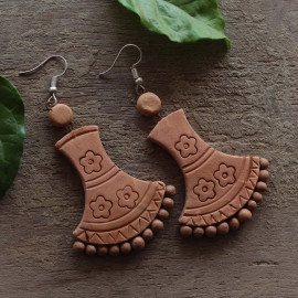 These Circular Design Big Terracotta Earrings are a stylish and unique way to add a touch of classiness to your attire. They are handmade from high quality terracotta clay with premium excellence. The earrings are comfortable and lightweight to carry, making them wonderful for everyday wear on special occasions and events such as parties, festivals and weddings. Face shape is one of the most essential things to think about when selecting earrings. For those lucky enough to have an oval-shaped face, any kind of earrings are appropriate for them. If you have a round face, select extensive earrings that will result in slimming. These earrings are also a wonderful gift for every woman who adores handmade and unique jewellery. The circular-design big terracotta earrings are crafted from 100% original terracotta clay. The earrings are handmade with intricate details and features. The half-moon design in the circular earrings will add a touch of charm to any attire. These earrings are adjustable, so they can fit additional ear sizes. Admire the beauty of circular-design terracotta earrings by keeping them separate at all times. Try to keep them away from heavy and metal jewellery, as the earrings are made of terracotta clay and the probability of them breaking is high.