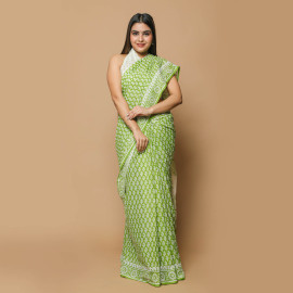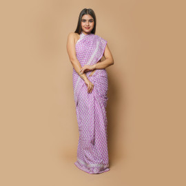 The canvas of this saree tells a story of meticulous craftsmanship, where skilled artisans have brought to life intricate patterns and designs using traditional block printing techniques. The result is a mesmerizing tapestry of artistry, with each block telling a tale of heritage and cultural richness.